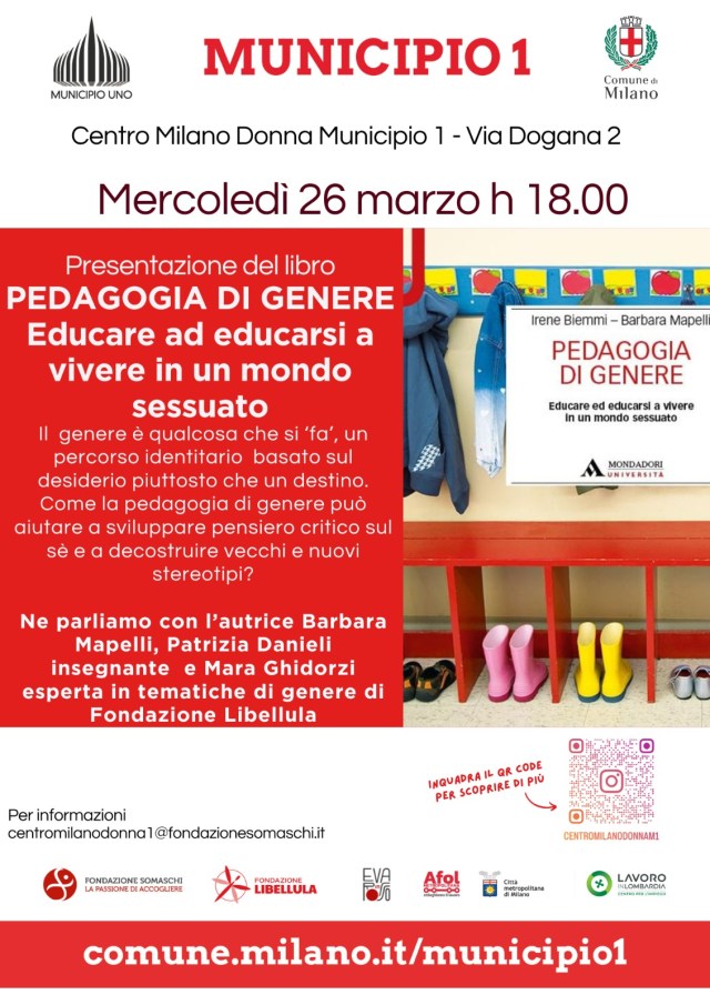 Un incontro importante organizzato dal comune di Milano che, oltre a me, tra le tante persone coinvolte vede Barbara Mapelli, pedagogista e saggista, Diana de Marchi, presidente pari opportunità e Diana Lenzi, co fondatrice di Indici Paritari.